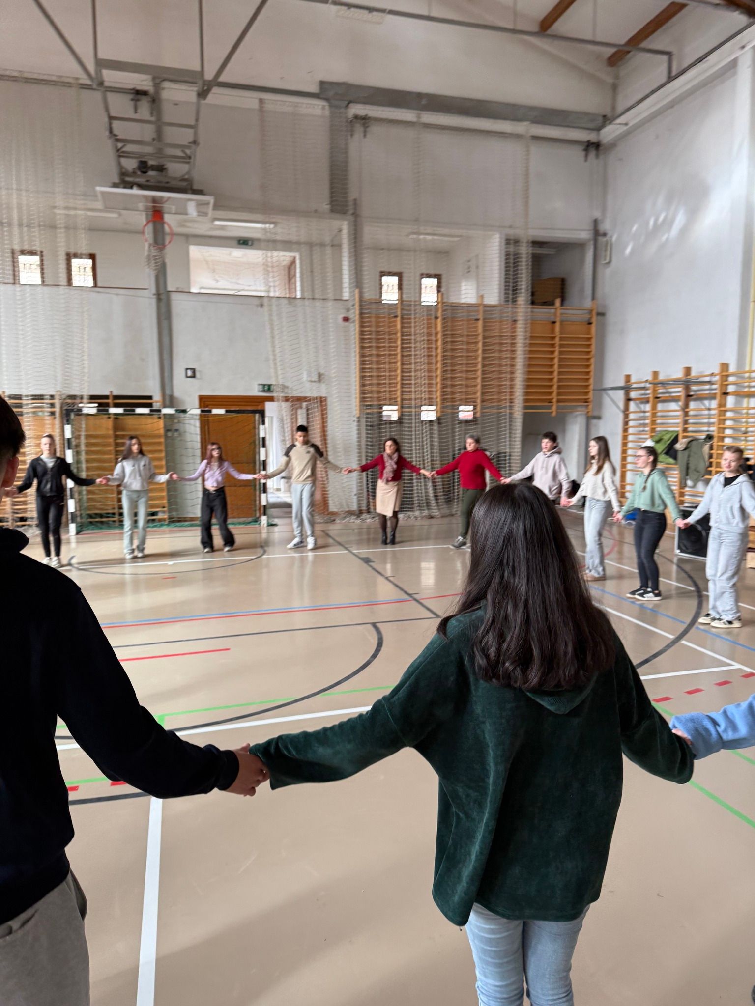 A mai napon a Diákönkormányzat által szervezett táncház alkalmával Schäffer József tanár úr és Apró Zsófia tanárnő segítségével megtanulhattunk a Busójáráson hallott vérpezsdítő dallamokra táncolni, kötetlen és vidám hangulatú rendezvényünkön tanárok és diákok egyaránt jól érezték magukat.